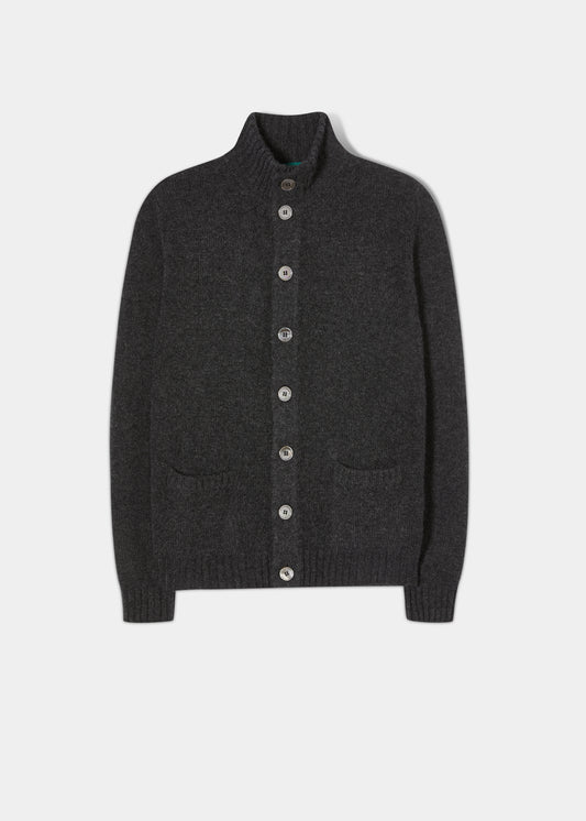 Landford Herrenpullover aus Lammwolle mit Knöpfen in Anthrazit – normale Passform