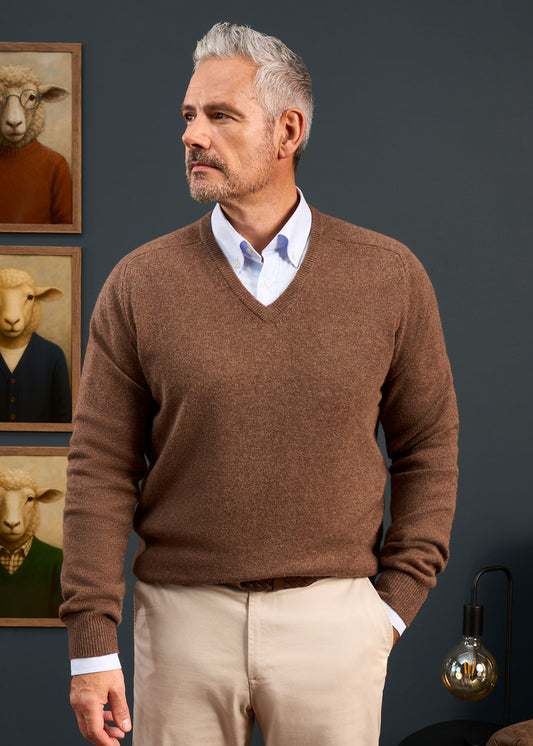 Hampshire-Lammwollpullover in Tabak – klassische Passform