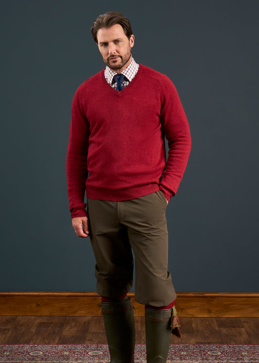 Kilsyth Herren-Lammwollpullover in Bordeaux – normale Passform