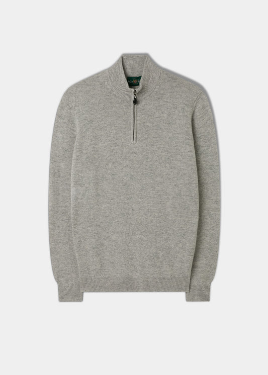 Herren Lamswollpullover mit 1/4-Reißverschluss in Perlgrau - Regular Fit