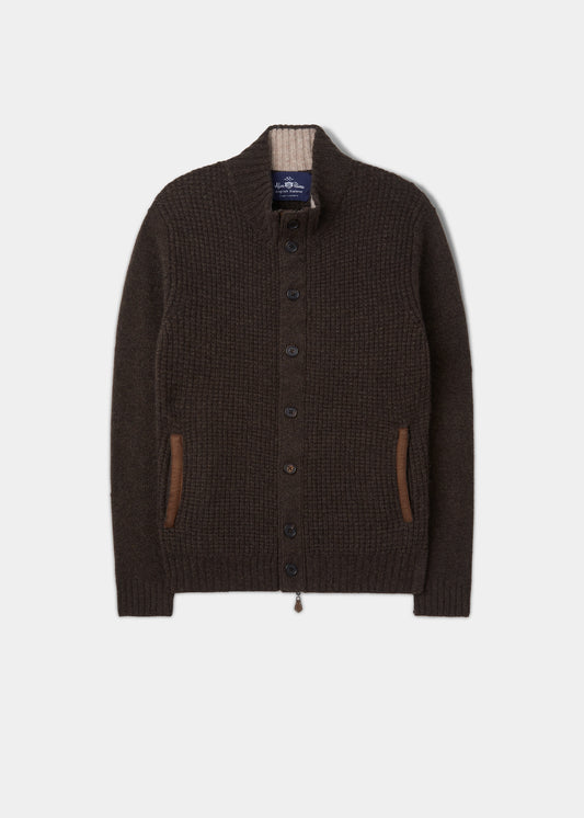 Duchally Herren Waffelstrick Wolljacke Kakao