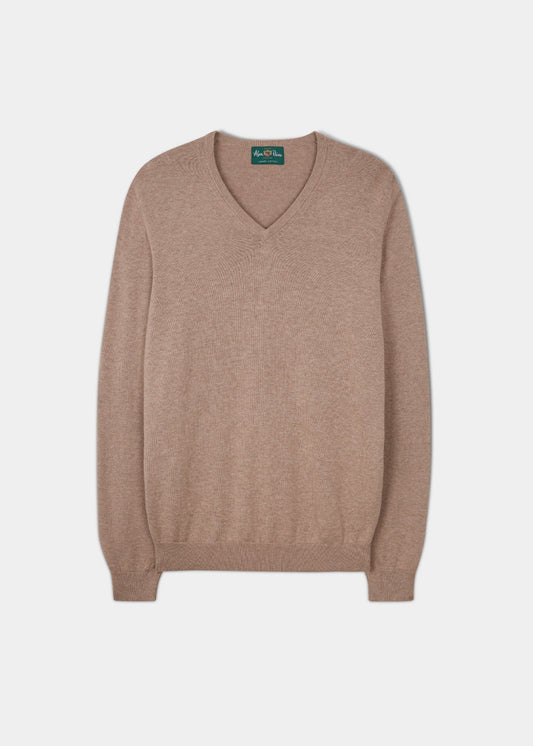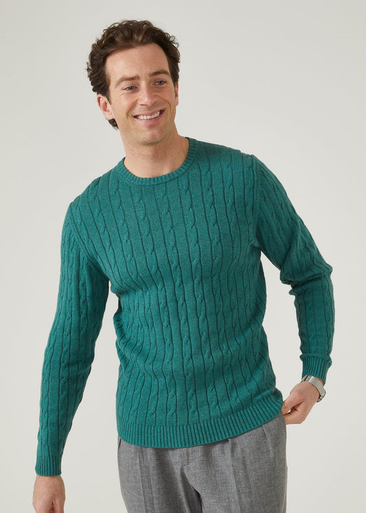 Honley Baumwoll-Kaschmir-Zopfstrickpullover in Moorland