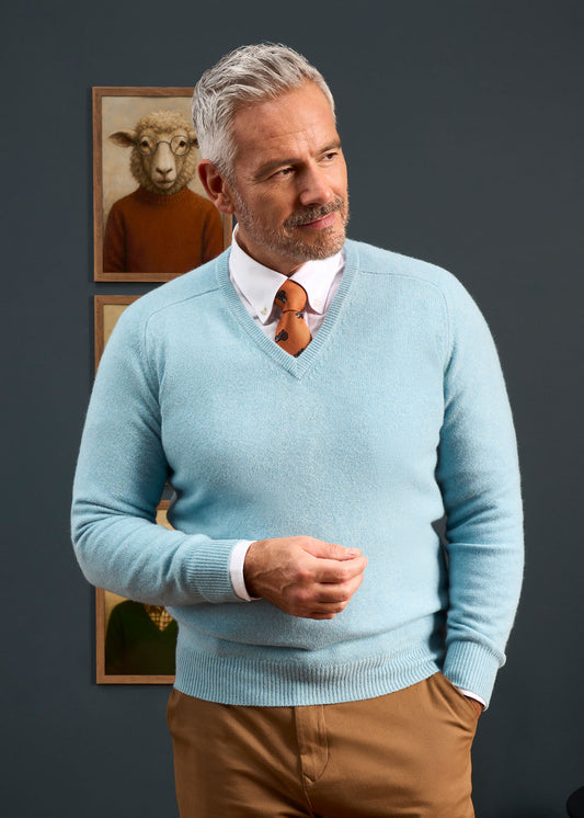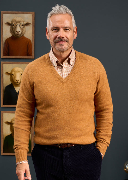 Für warme Kleidung auf dem Land ist der Lambswool V-Ausschnitt ideal – perfekt unter einer Outdoorjacke.