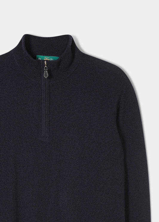 Barton-Pullover aus Merinowolle mit 1/4-Reißverschluss in dunklem Marineblau – normale Passform