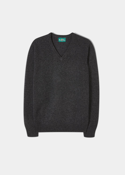 Kilsyth Herren-Lammwollpullover in Anthrazit – normale Passform
