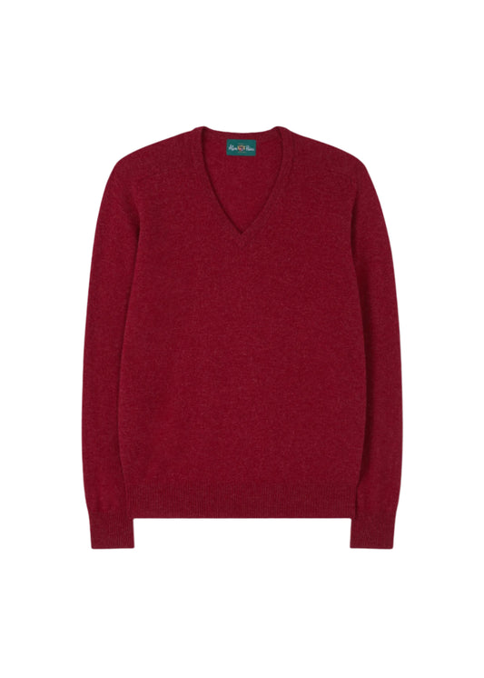 Kilsyth Herren-Lammwollpullover aus rotem Samt – normale Passform