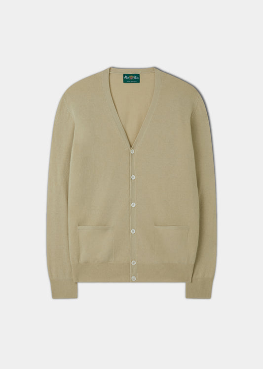 Herren-Cardigan aus Geelong-Lammwolle in Natur – klassische Passform