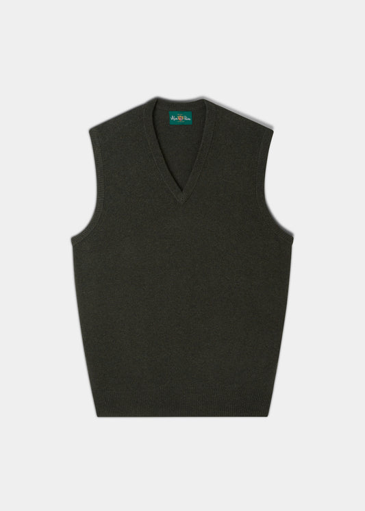 Norfolk Herren-Slipover aus Lammwolle in Seetang – klassische Passform