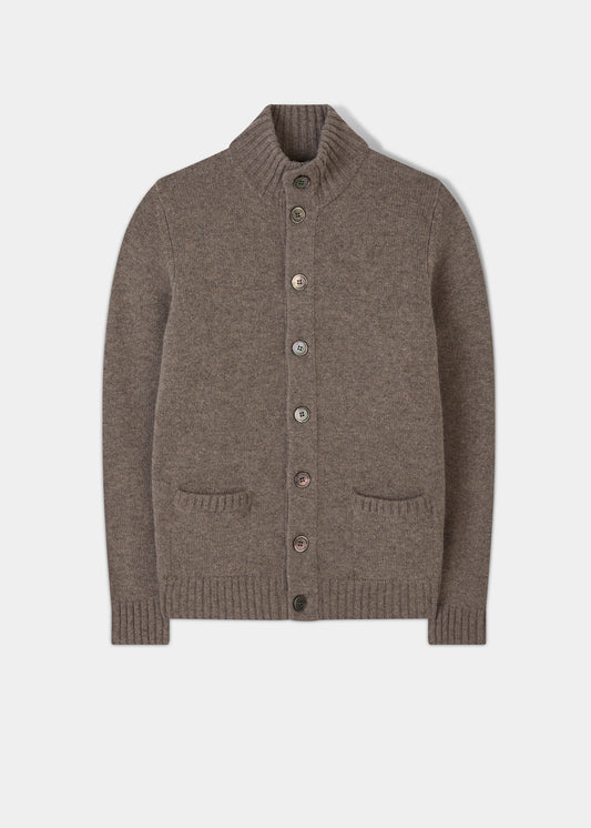 Cornwall-Lammwoll-Cardigan in Vole – klassische Passform