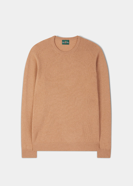 Lenzie Herren-Lammwollpullover in Kamel – normale Passform