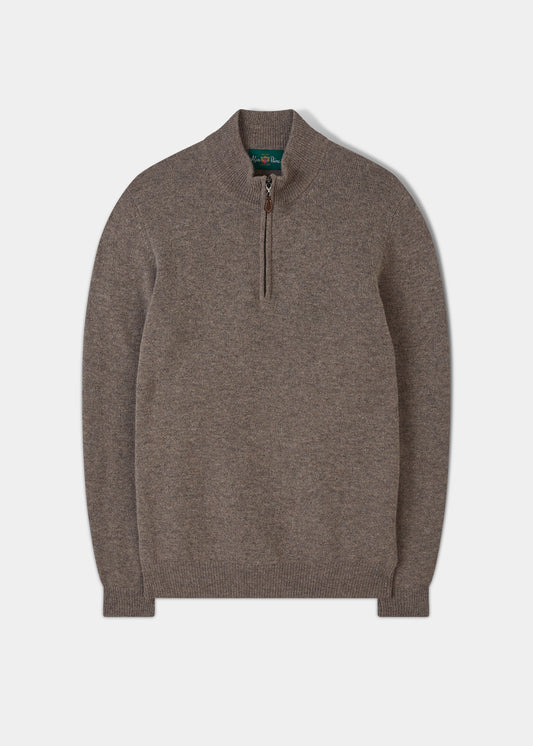 Ballater-Pullover aus Lammwolle mit Reißverschluss in Vole – normale Passform