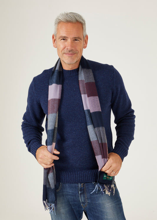 Westhay Herren-Kaschmirschal mit Blockkaromuster in Bordeaux