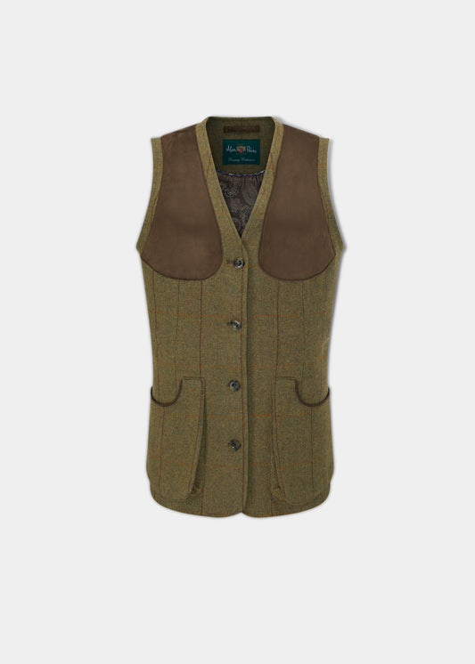 Combrook Damen-Tweed-Schießweste in Weidengrün – normale Passform