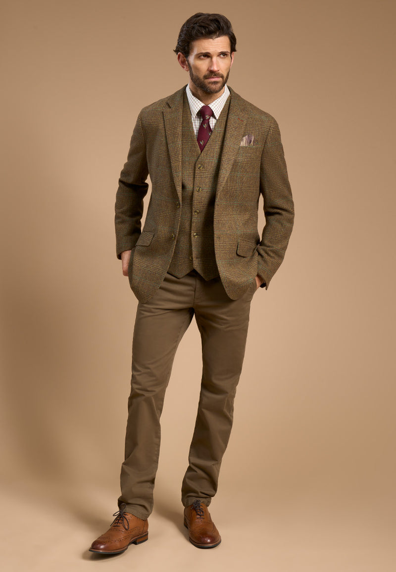 Men usually wear tweed jackets or tailored coats, smart trousers, brogues or boots, and a shirt or knitwear. A smart overcoat or scarf is ideal for colder weather.