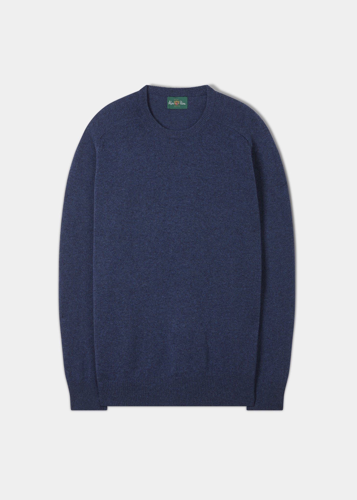 Der Rundhalsausschnitt ist ein vielseitiges Stück, ein Lagenstück und ein Alltagsstück. Hergestellt aus reiner, superweicher Lammwolle und gesponnen von Europas ältestem Spinner, Z. Hinchliffe, der vor 250 Jahren in Yorkshire, England, gegründet wurde. Es hat eine vollständige Sattelschulterform, einen großzügigen Schnitt an der Taille und eine entspannte, traditionellere und bequemere Passform.