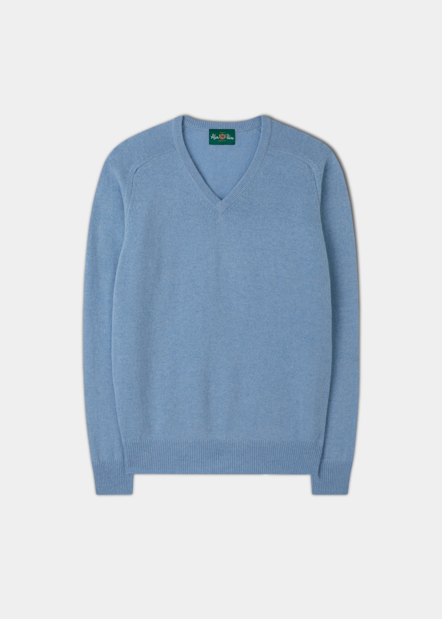 Herrenpullover aus Lammwolle mit V-Ausschnitt in Iceberg – normale Passform