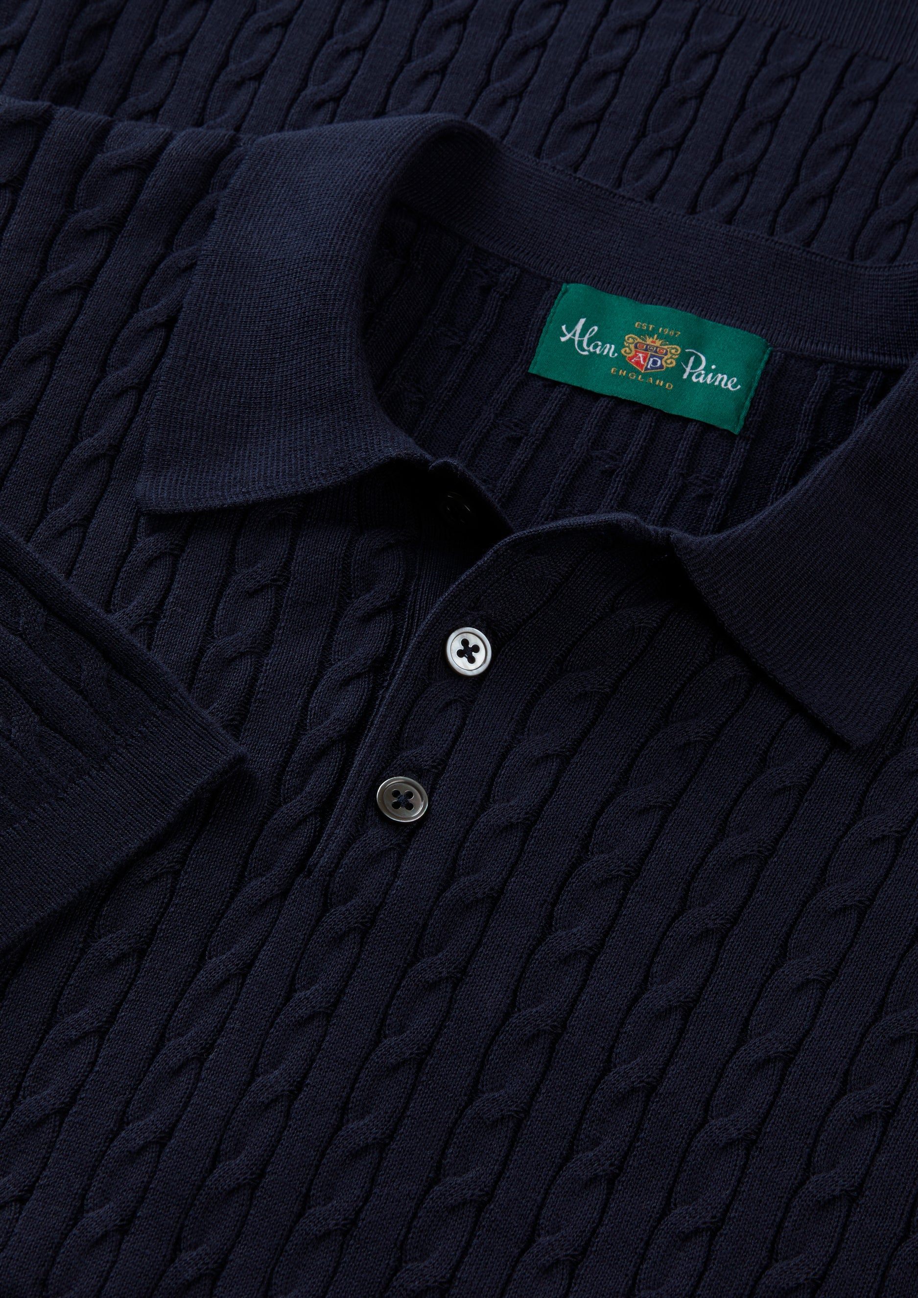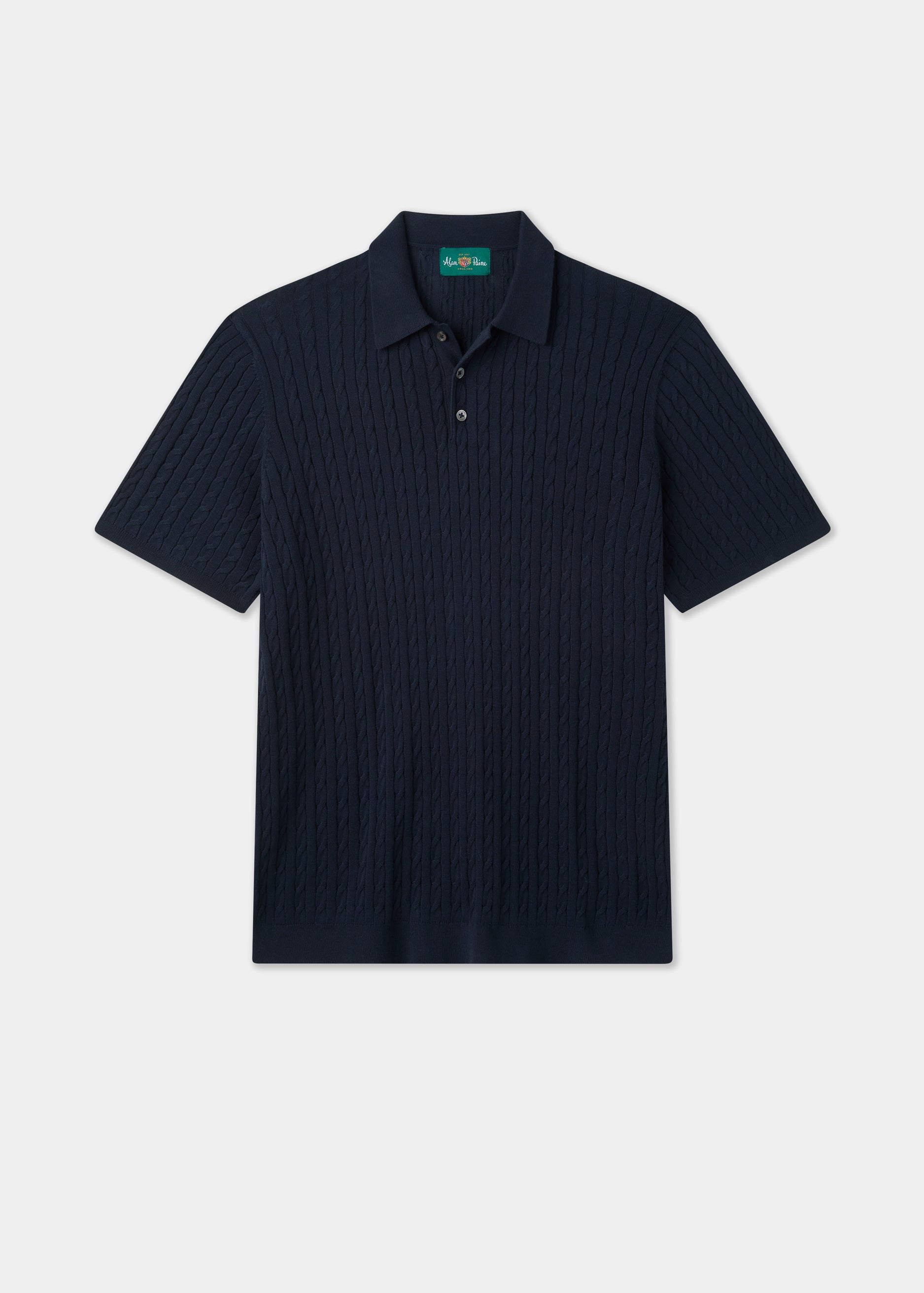 Portmellon Men's Baby Cable & Bar Polo In Dark Navy
