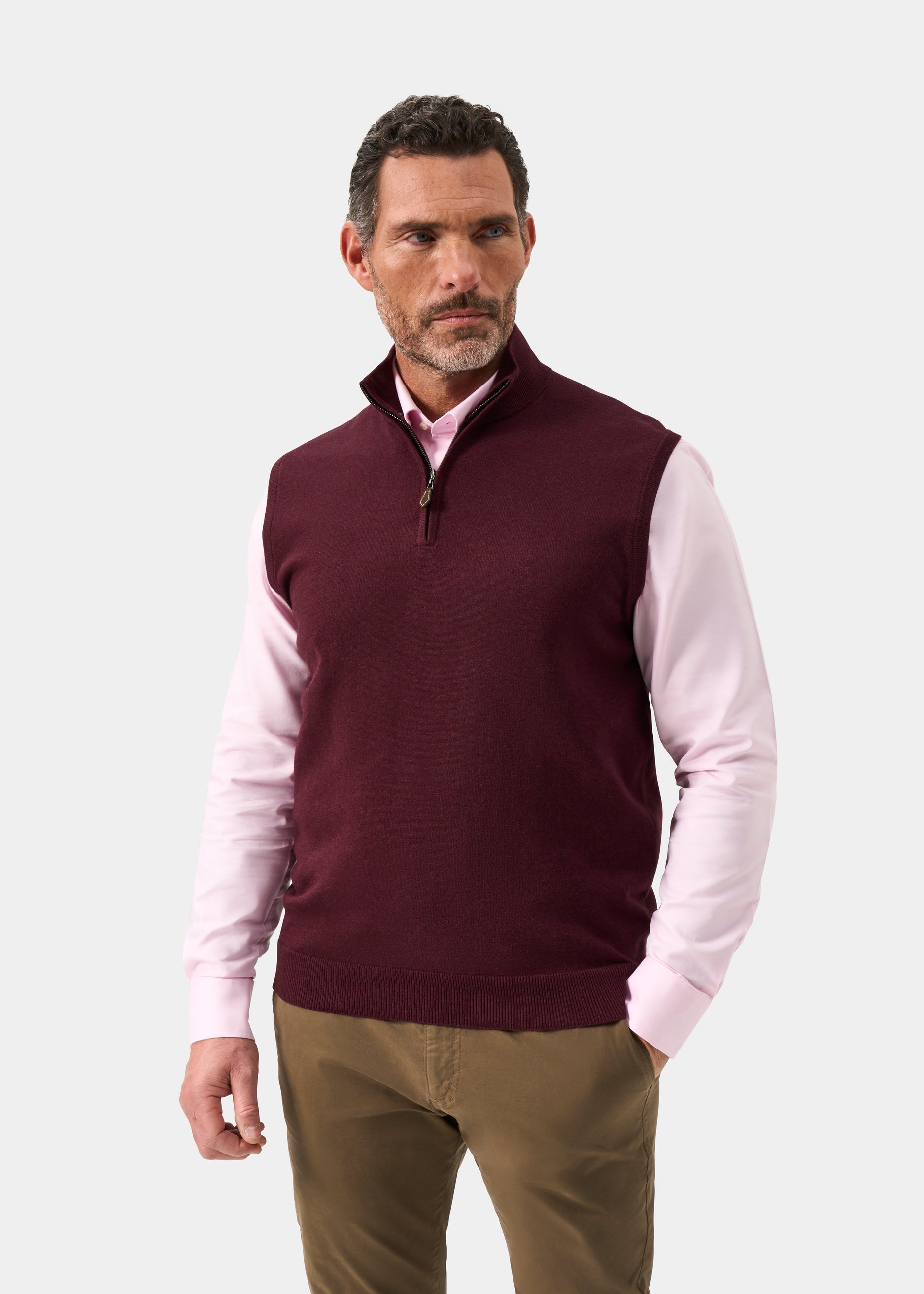 Elevate your layering game with the Rowley Men's Cotton Cashmere 1/4 Zip Gilet in Blackcurrant. Crafted from a luxurious cotton-cashmere blend, this versatile piece delivers exceptional softness and warmth without bulk. The quarter-zip design offers easy adjustability for changing conditions, while the refined blackcurrant hue complements any outdoor wardrobe. Perfect for layering over shirts or wearing standalone, this gilet combines timeless style with practical performance—ideal for countryside pursuits and everyday sophistication.