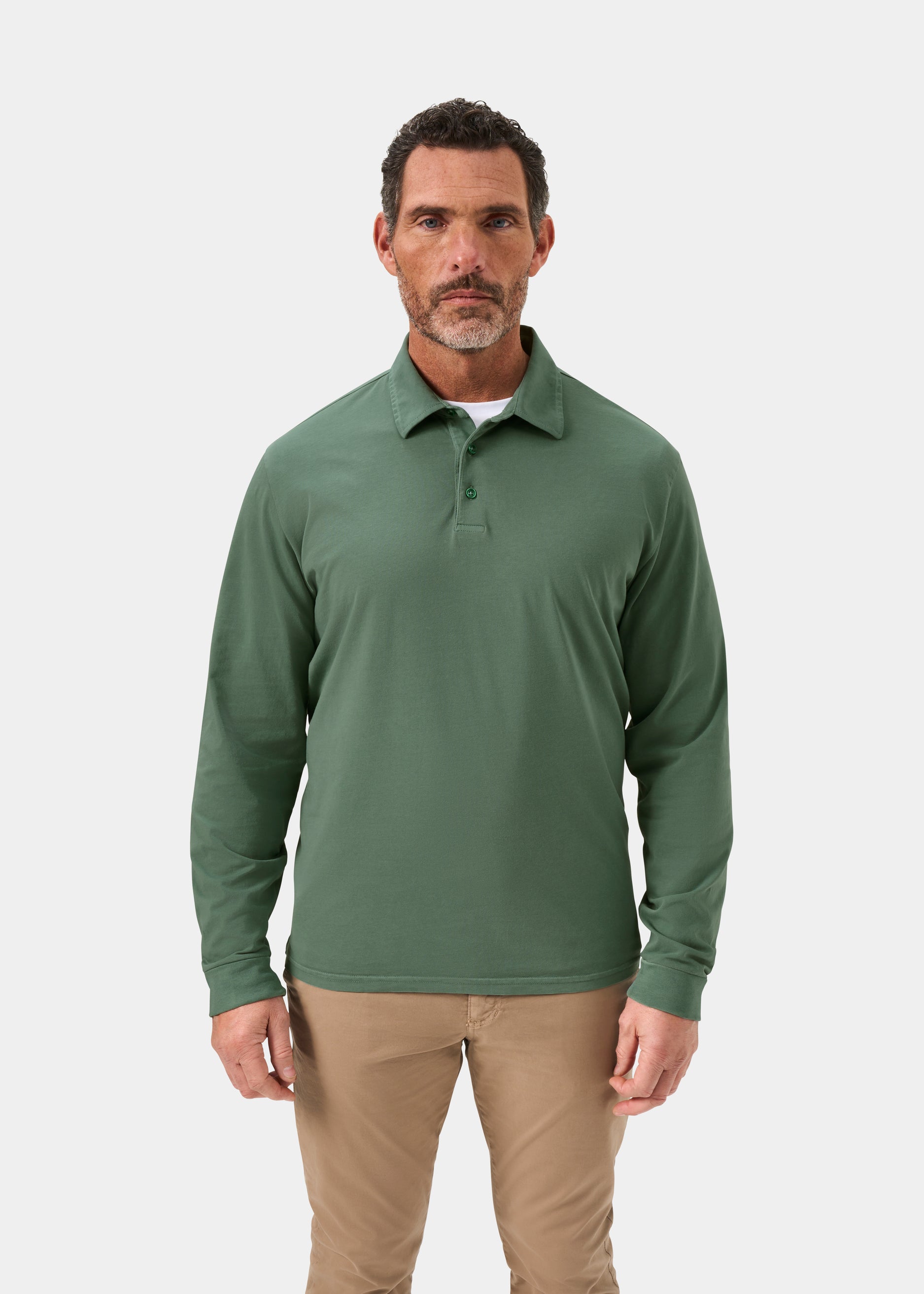 Following the popularity of our short sleeve faded dye polo, our long sleeve polo is perfect for warm spring days and cooler summer evenings. The vintage appearance gives a casual feel for a laid-back summer look. The touch of elastic guarantees a super flexible fit for endless comfort when the temperature rises.